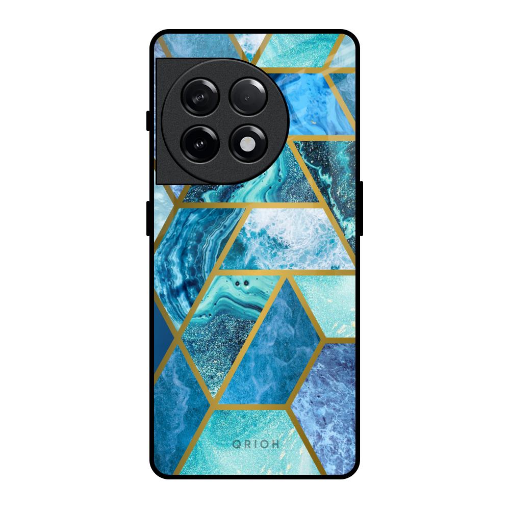 Turquoise Geometrical Marble Glass Case for OnePlus 11R 5G