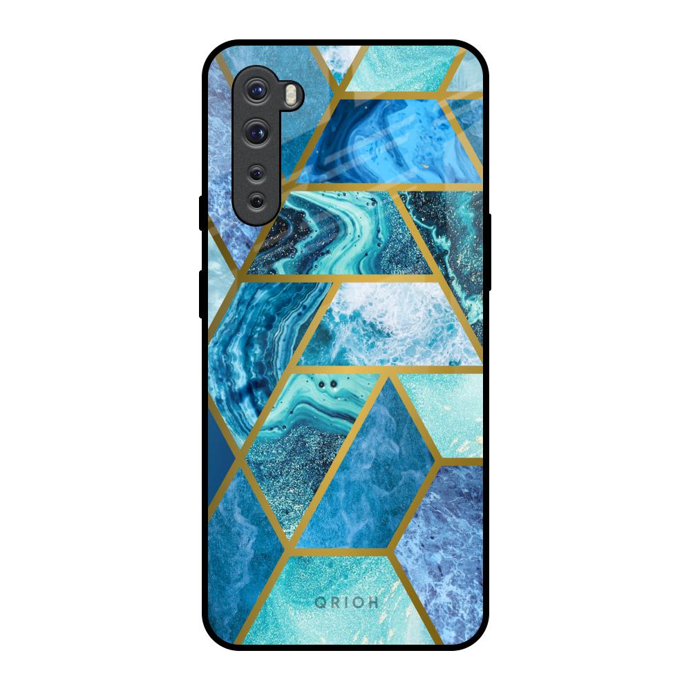 Turquoise Geometrical Marble Glass Case for OnePlus Nord
