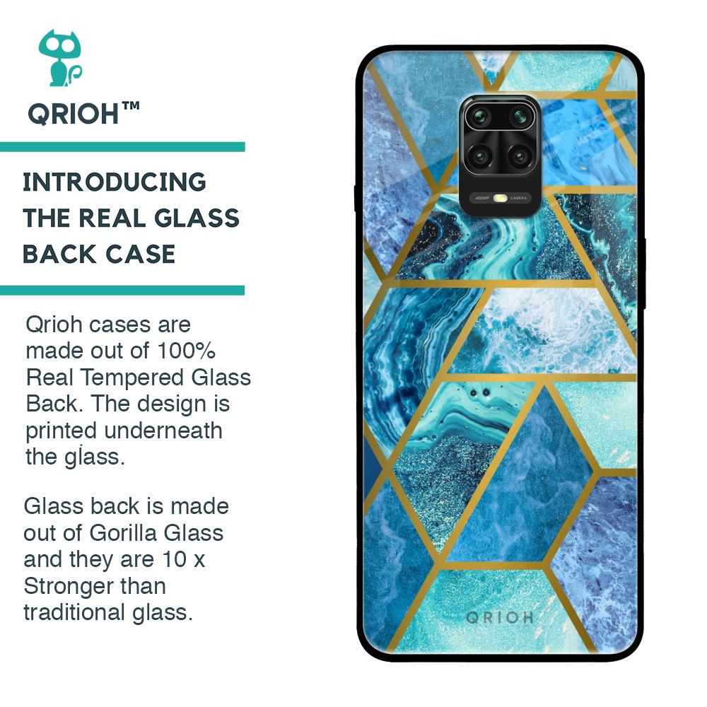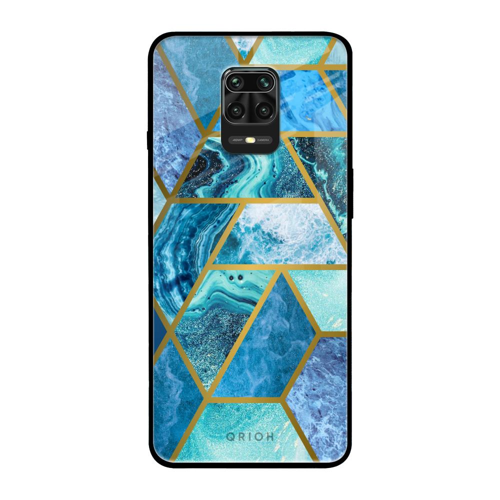 Turquoise Geometrical Marble Glass Case for Poco M2 Pro