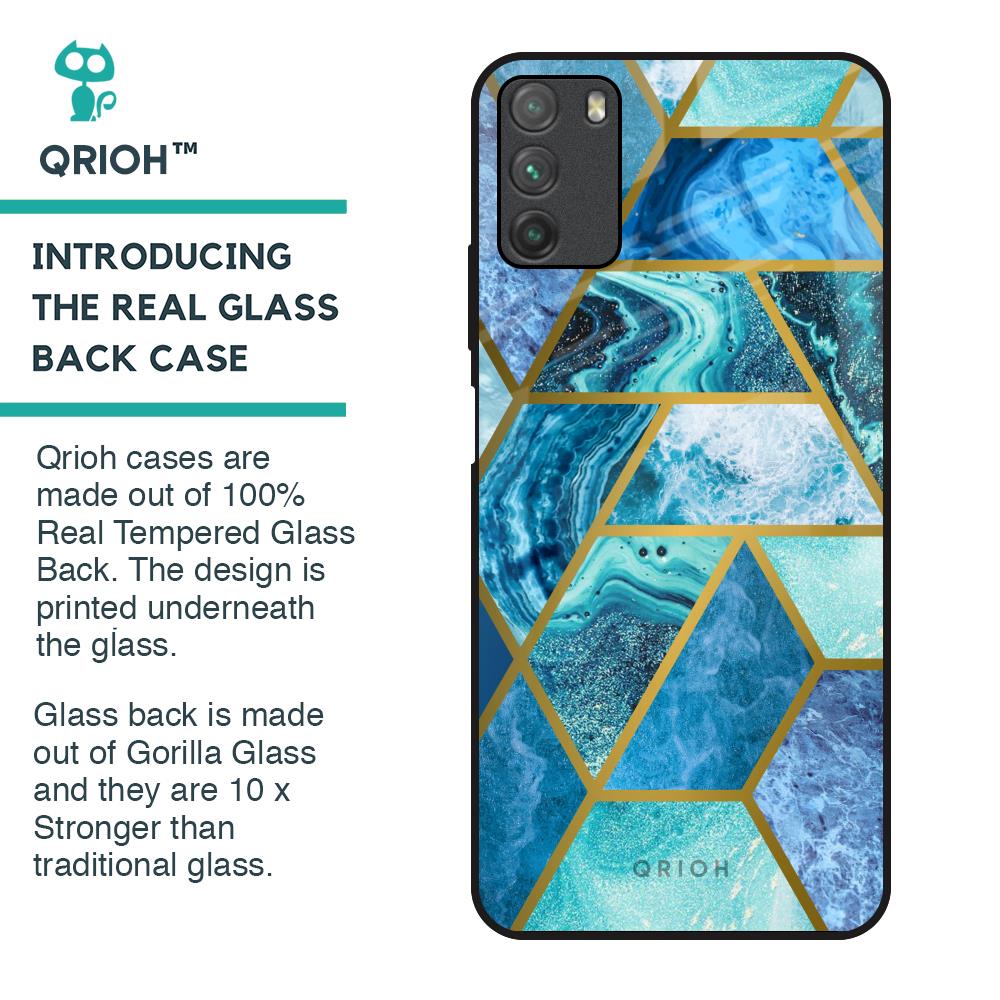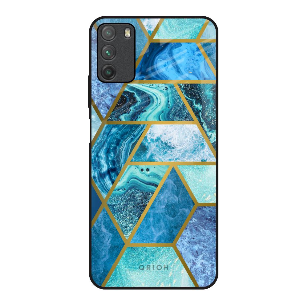 Turquoise Geometrical Marble Glass Case for Poco M3