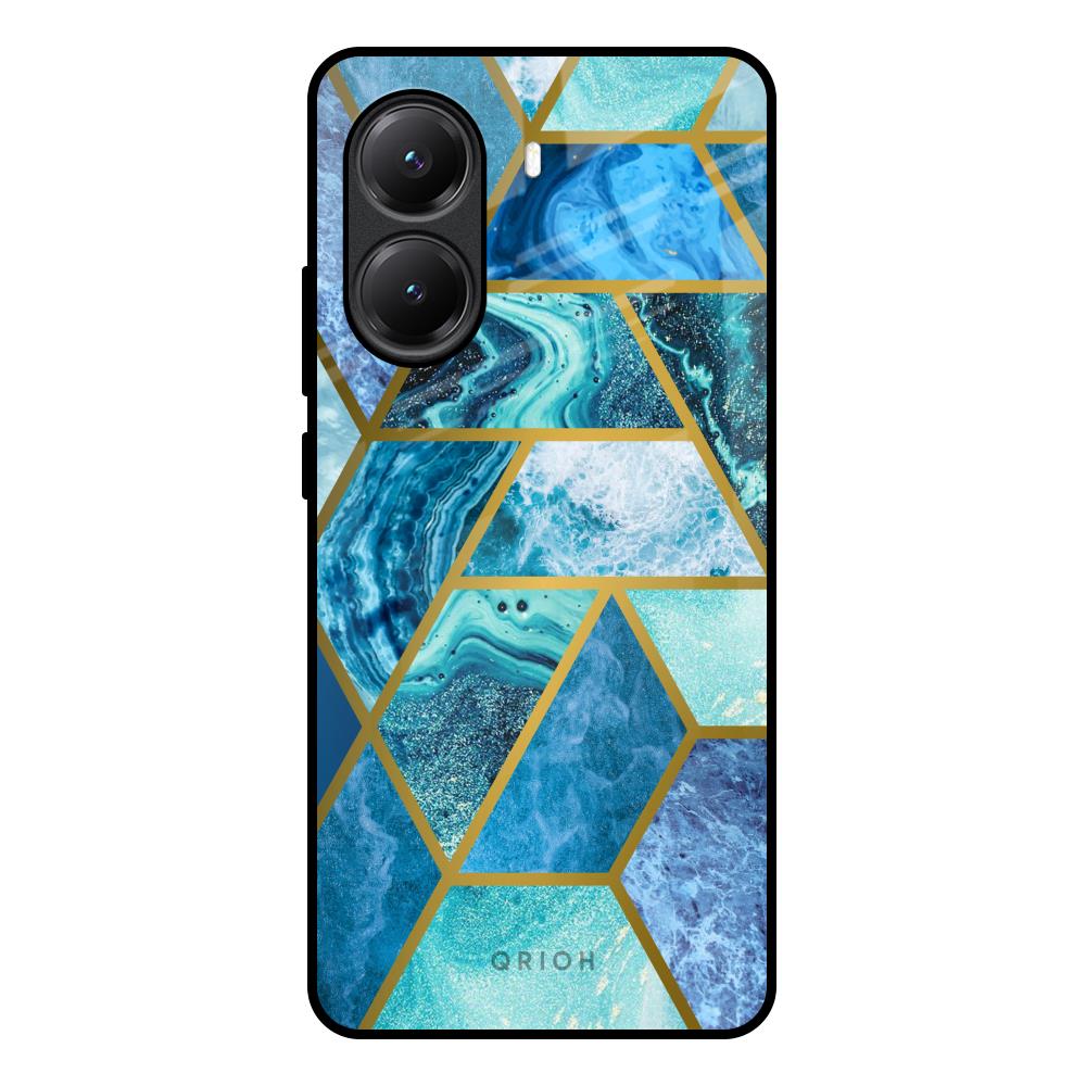 Turquoise Geometrical Marble Glass Case for Poco X7 Pro 5G