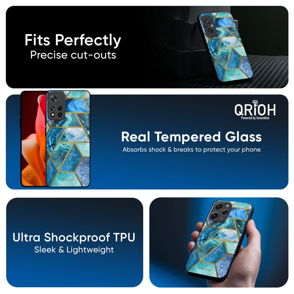 Turquoise Geometrical Marble Glass Case for Redmi Note 14 Pro 5G