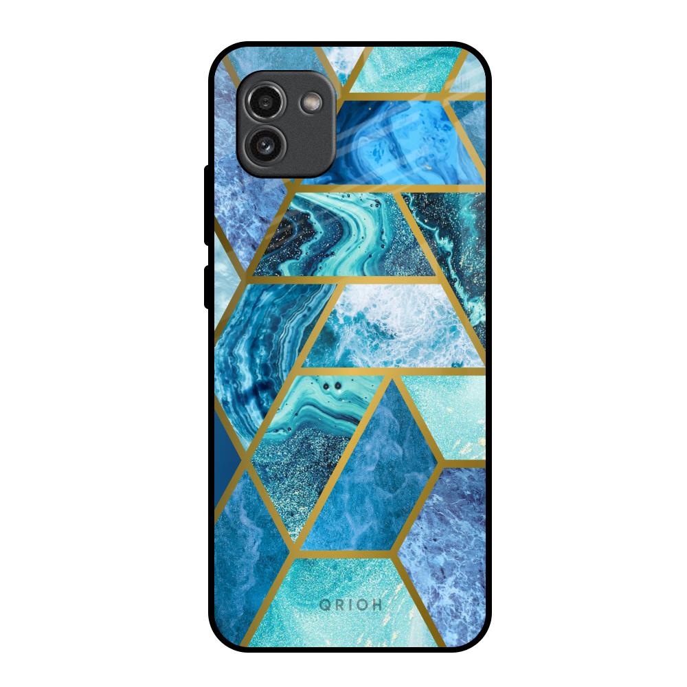 Turquoise Geometrical Marble Glass Case for Samsung Galaxy A03