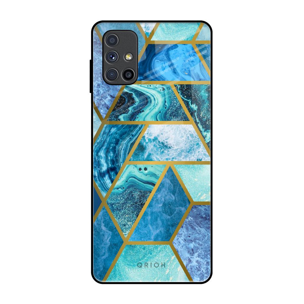 Turquoise Geometrical Marble Glass Case for Samsung Galaxy M51