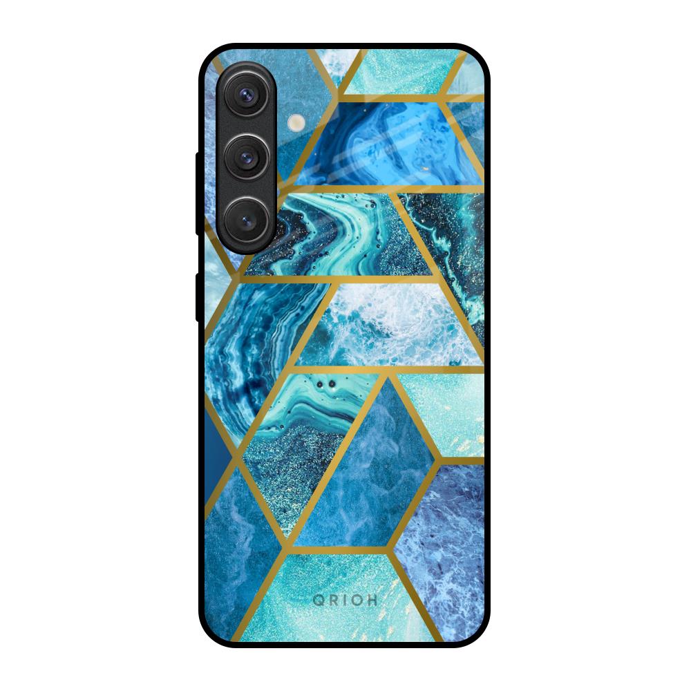 Turquoise Geometrical Marble Glass Case for Samsung Galaxy S25 5G