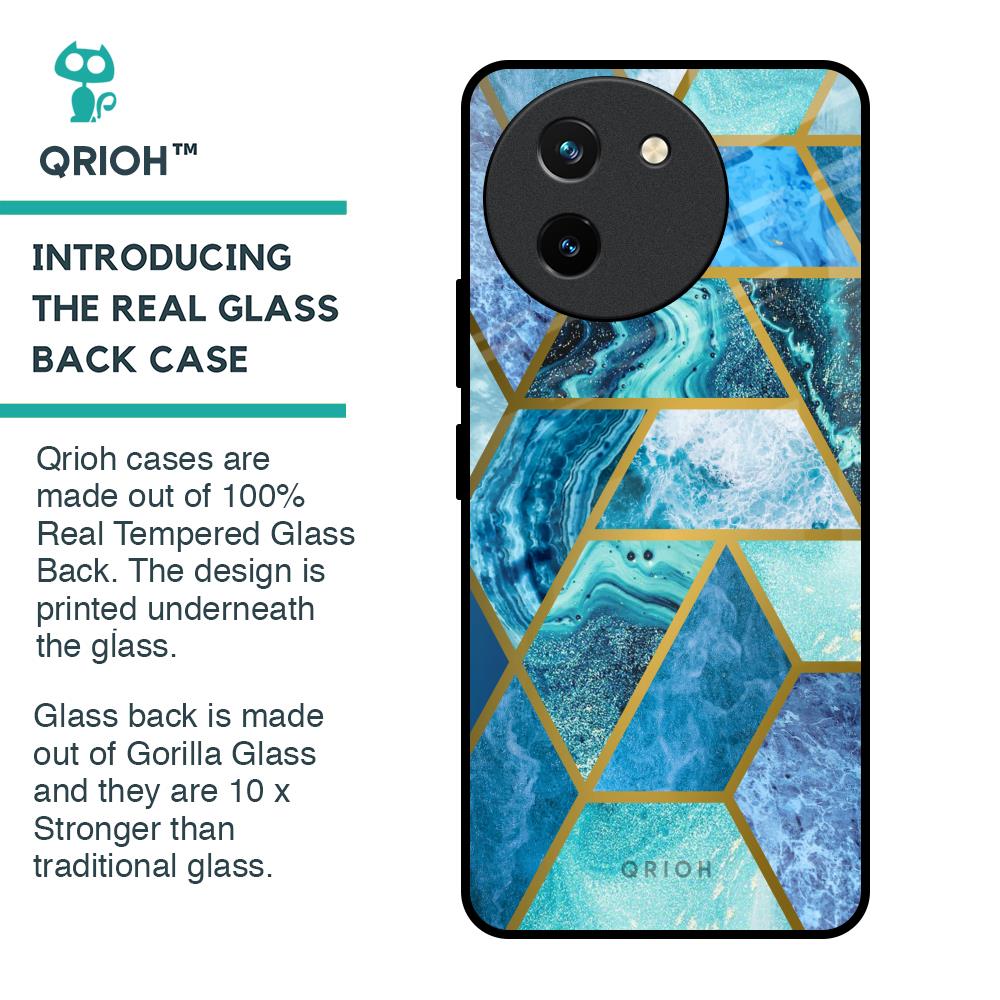 Turquoise Geometrical Marble Glass Case for Vivo T3X 5G