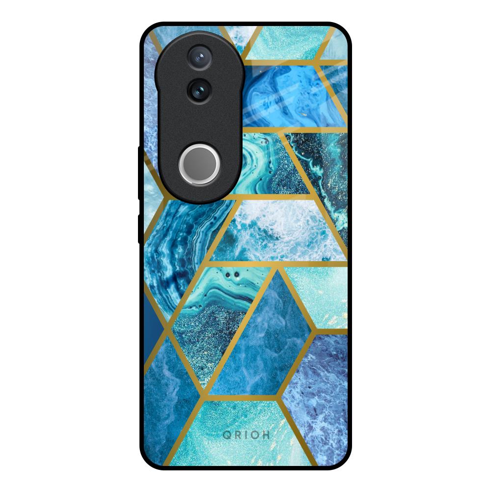 Turquoise Geometrical Marble Glass Case for Vivo V50e 5G