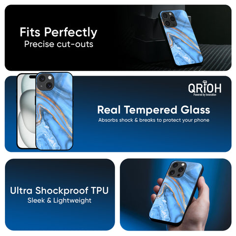 Vibrant Blue Marble Glass Case for iPhone 16 Pro
