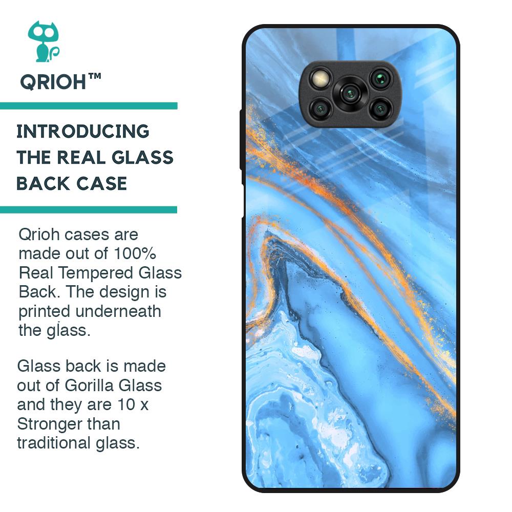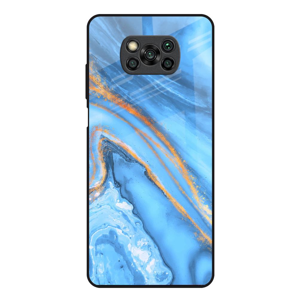 Vibrant Blue Marble Glass Case for Poco X3
