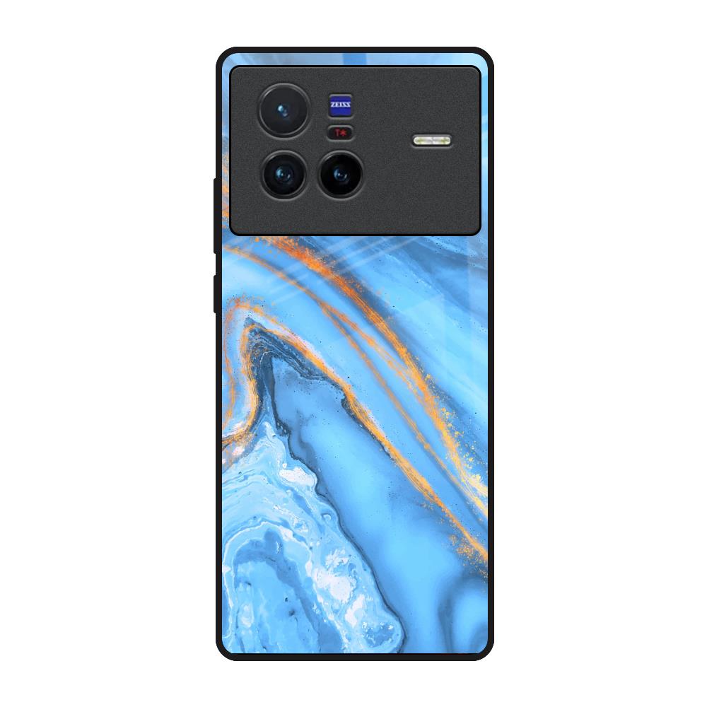 Vibrant Blue Marble Glass Case for Vivo X80 5G