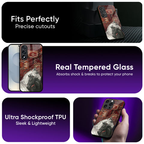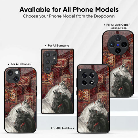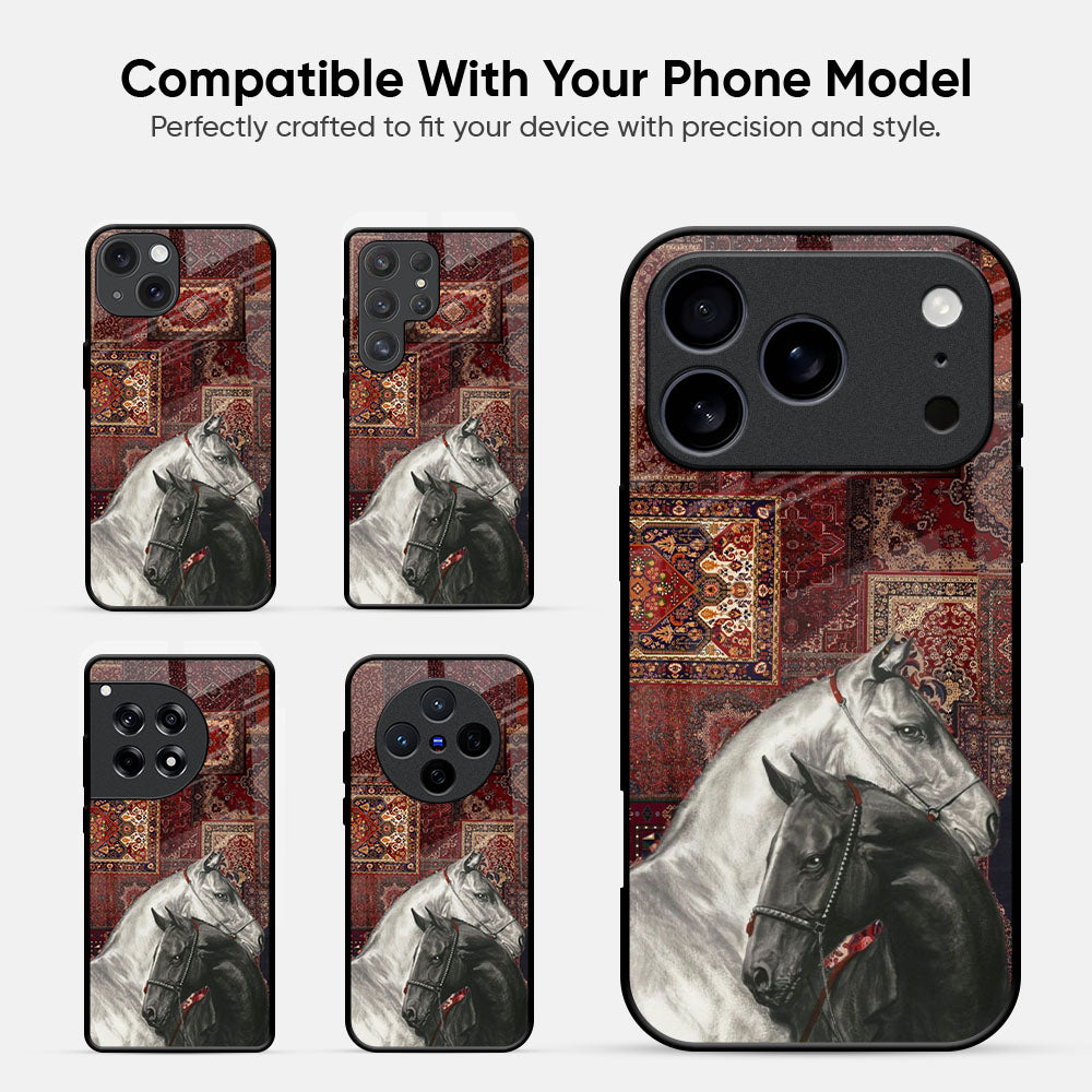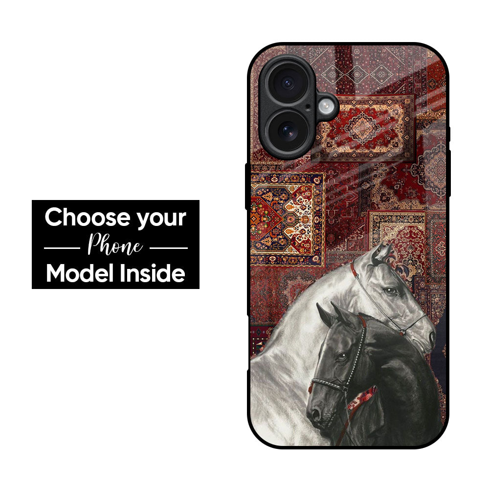 White And Black Horses Glass Case