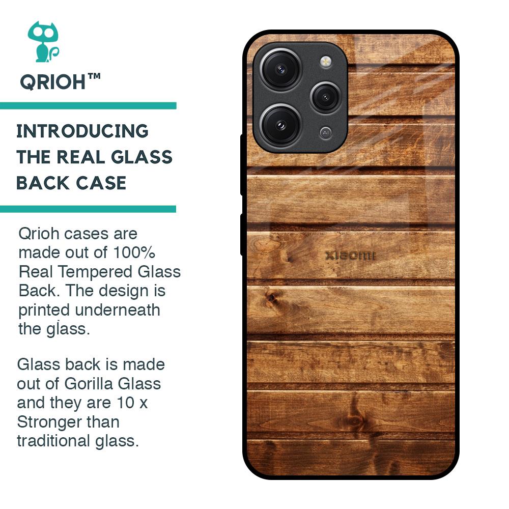 Wooden Planks Glass Case for Redmi 12