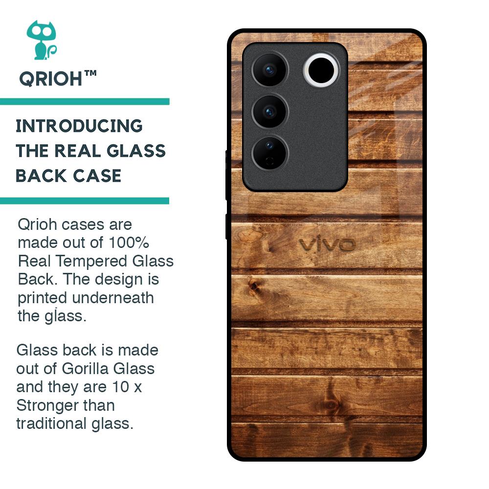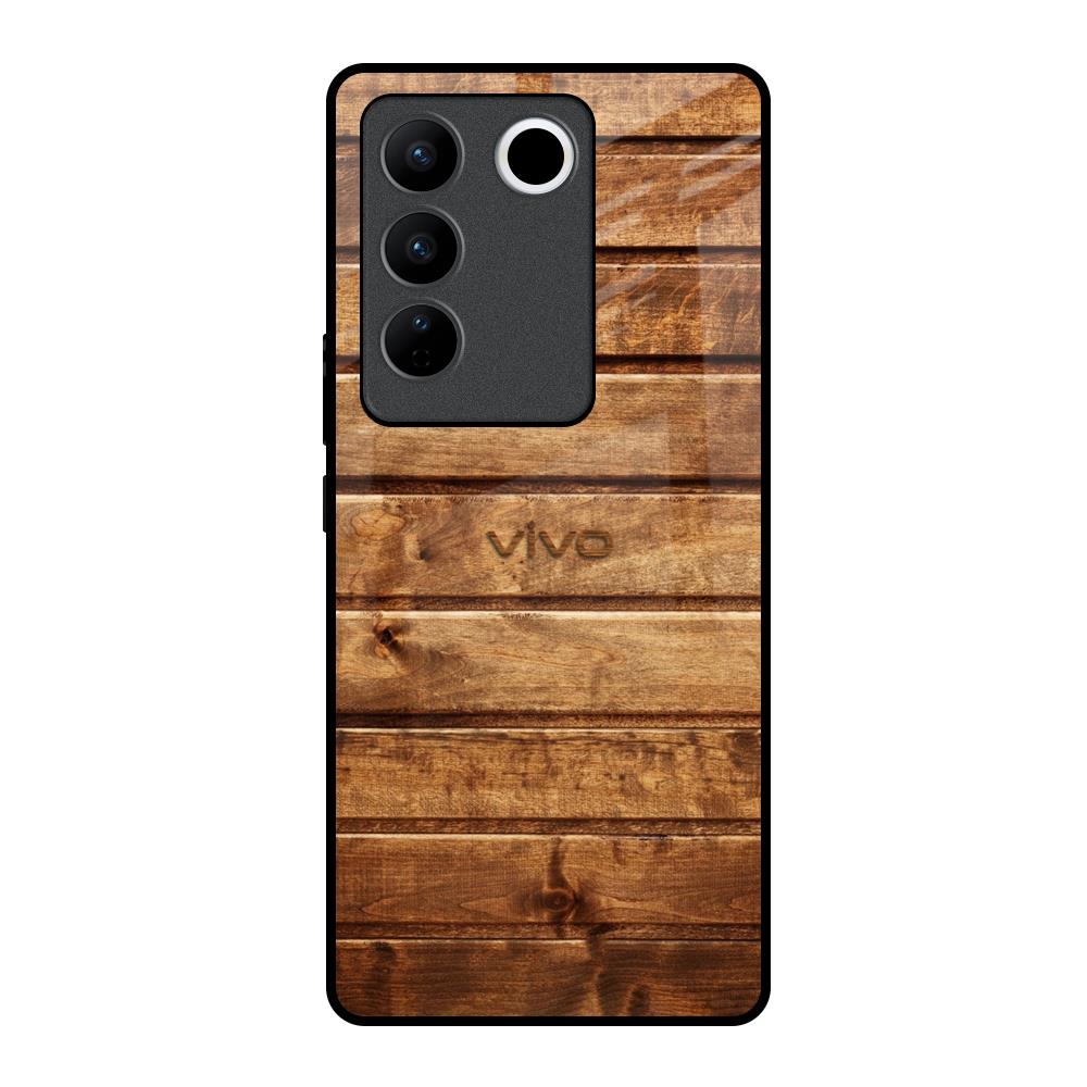Wooden Planks Glass Case for Vivo V27 Pro 5G