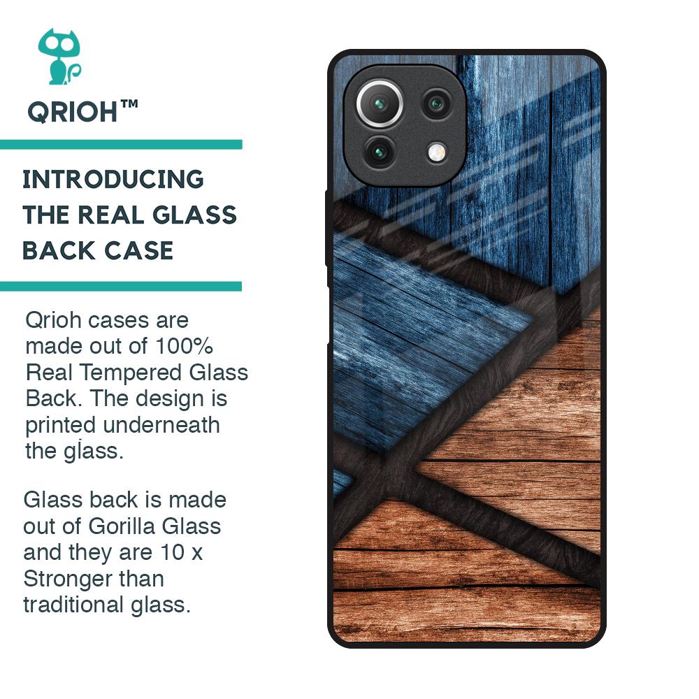 Wooden Tiles Glass Case for Mi 11 Lite