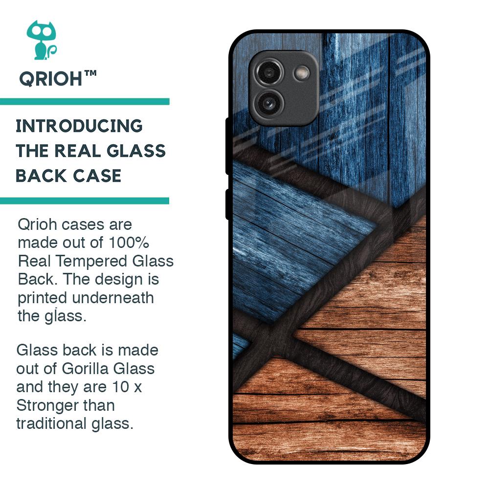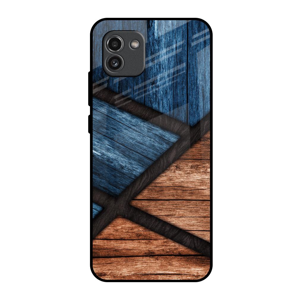 Wooden Tiles Glass Case for Samsung Galaxy A03