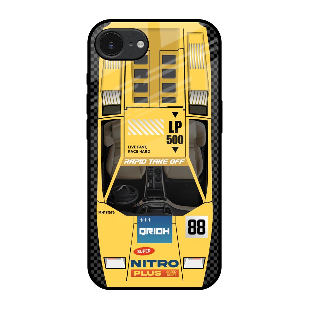 Yellow Racing Car Glass Case for Apple iPhone 16e