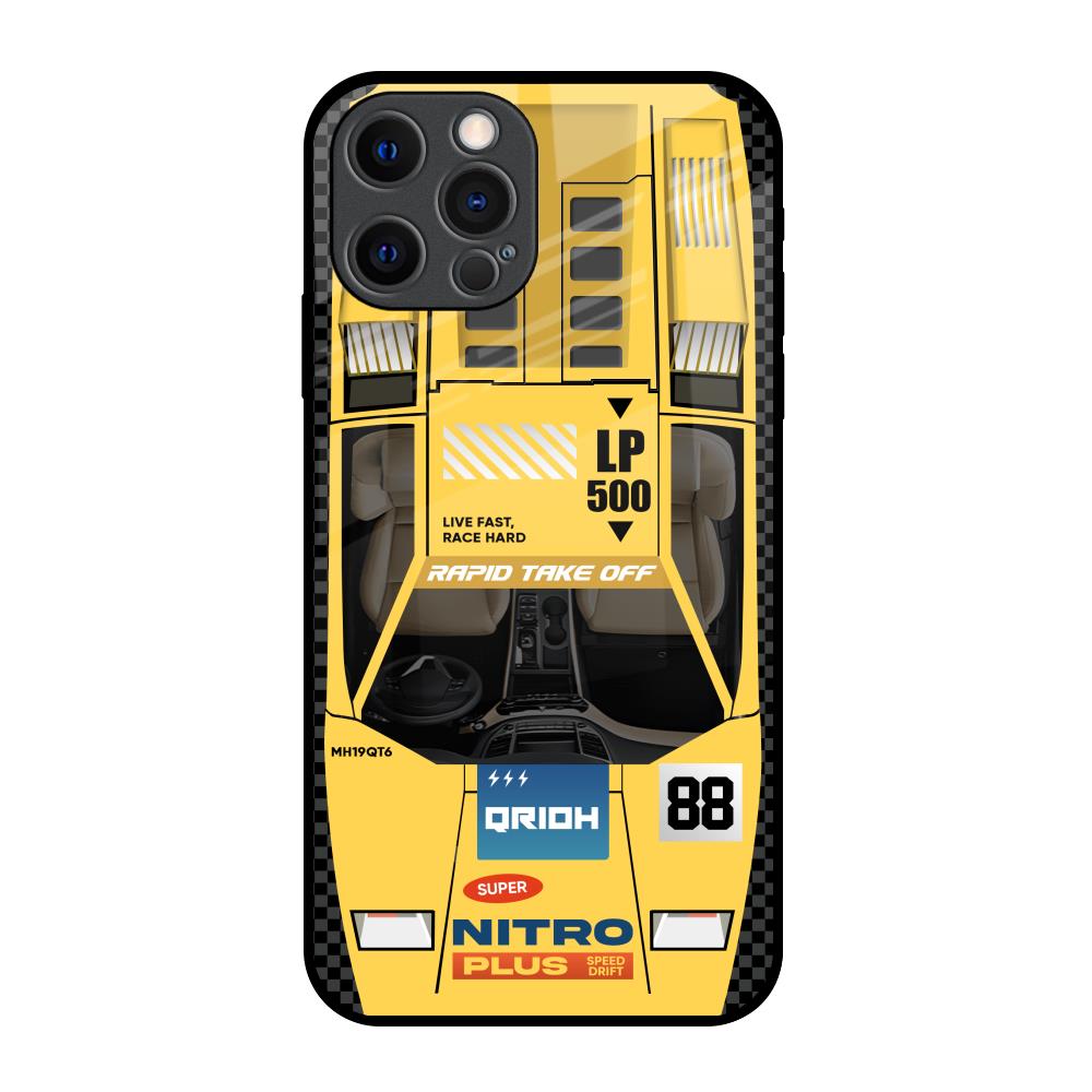 Yellow Racing Car Glass Case for iPhone 12 Pro