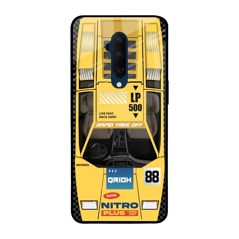 Yellow Racing Car Glass Case for OnePlus 7T Pro