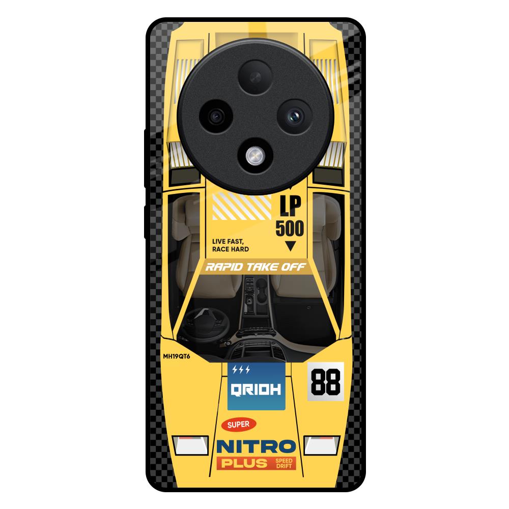 Yellow Racing Car Glass Case for Oppo F27 Pro Plus