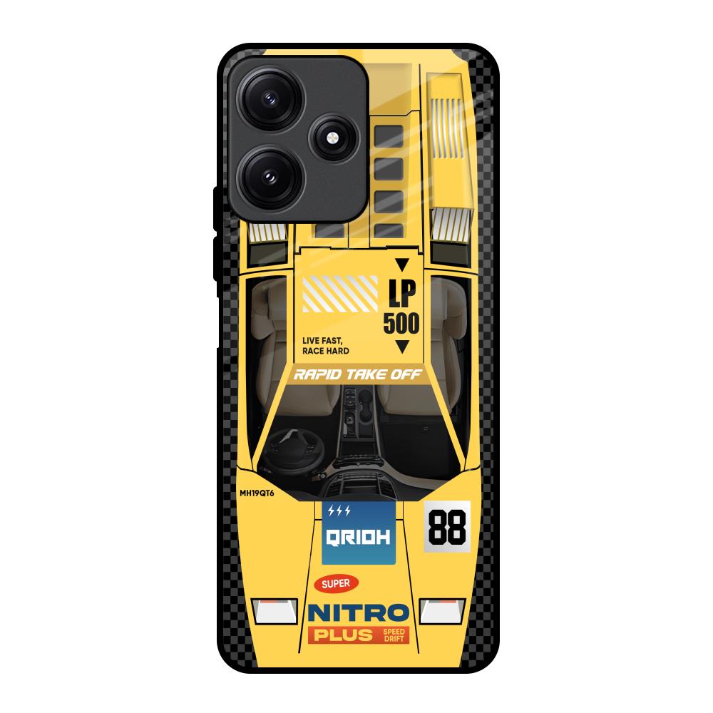 Yellow Racing Car Glass Case for Poco M6 Pro 5G