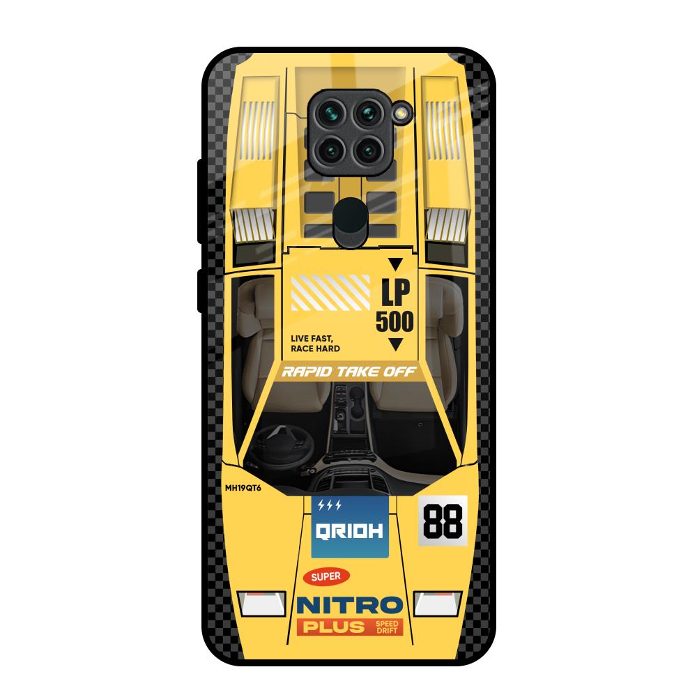 Yellow Racing Car Glass Case for Redmi Note 9