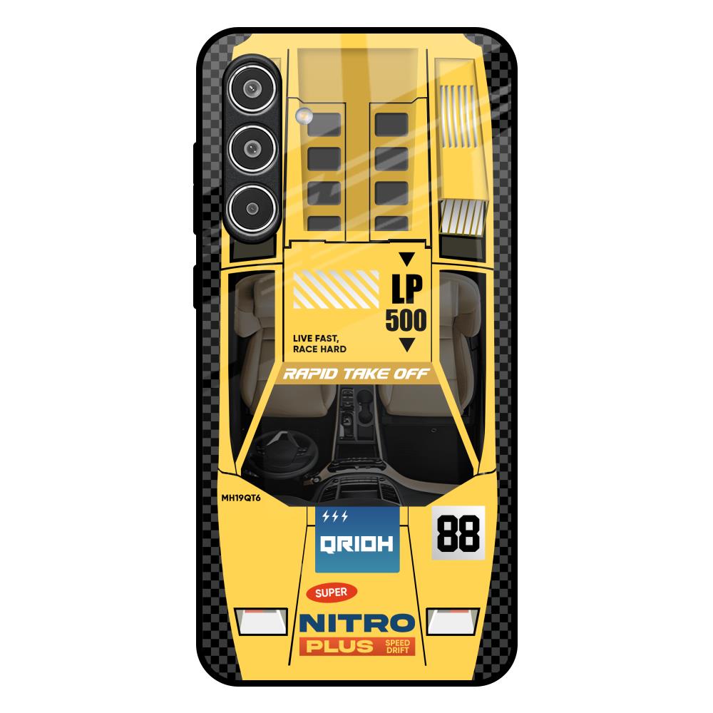 Yellow Racing Car Glass Case for Samsung Galaxy A56 5G