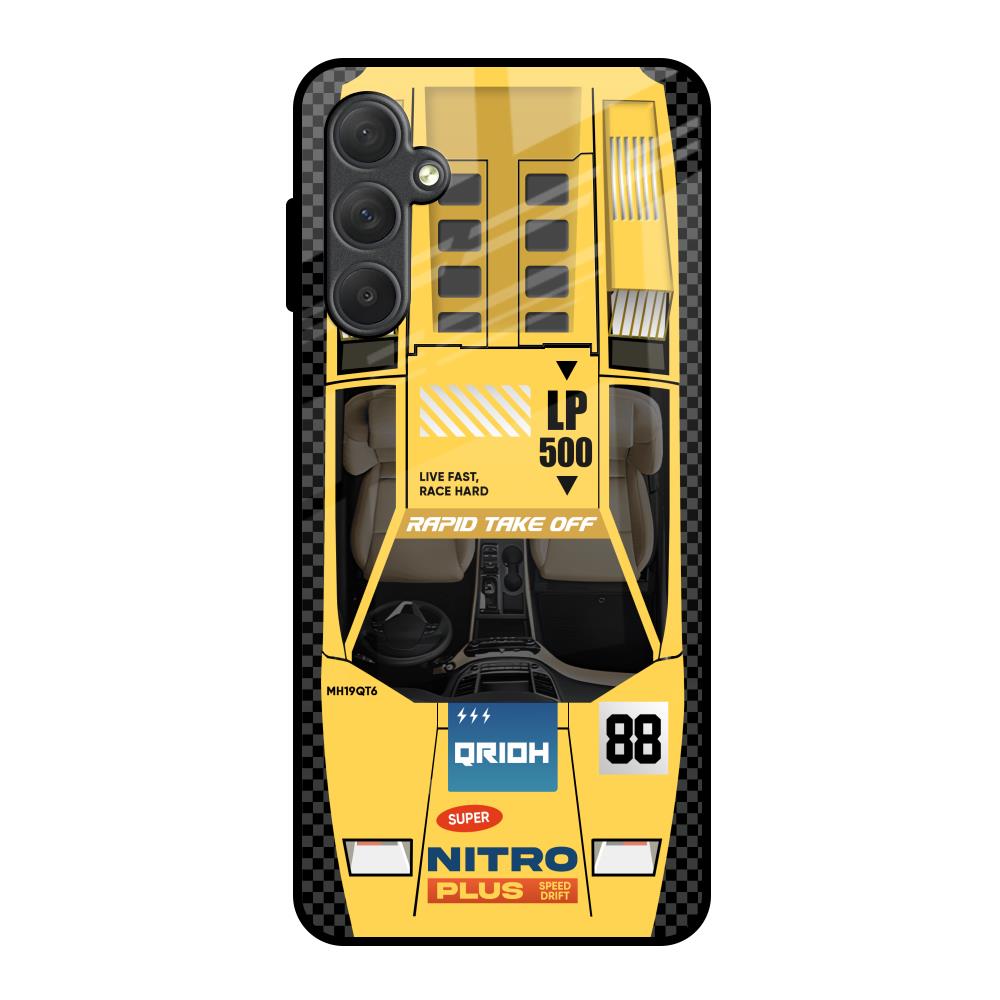 Yellow Racing Car Glass Case for Samsung Galaxy F54 5G
