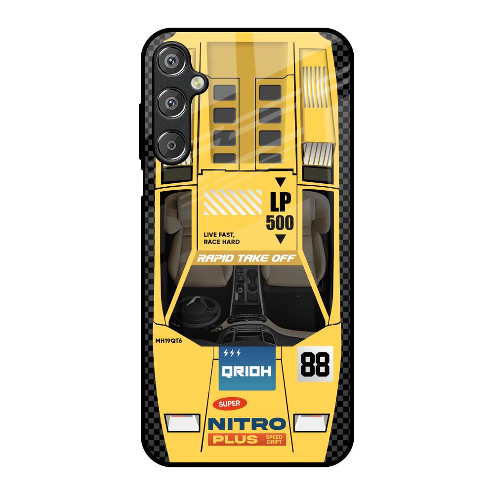 Yellow Racing Car Glass Case for Samsung Galaxy M15 5G